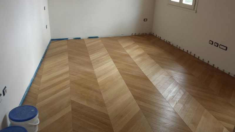 Listone prefinito tre strati con incastro maschio/femmina e bisellatura sui 4 lati. Essenza legno nobile in Rovere spessore 4mm. Controbilanciatura in Derullato di Pioppo. Disponibile in due scelte: AB- Selezione rigata, fiammature, occhi di pernice, discolorazioni. CD- Selezione fiammata con nodi, stonalizzazioni e alburno. Finitura naturale, colorato, decapato, laccato. Disponibile grezzo, verniciato e oliato.