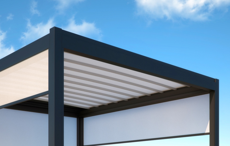 Realizzata interamente in alluminio e dotata di copertura con tenda scorrevole su guide chiudibile a pacchetto, NOMO rappresenta una struttura di nuova generazione.